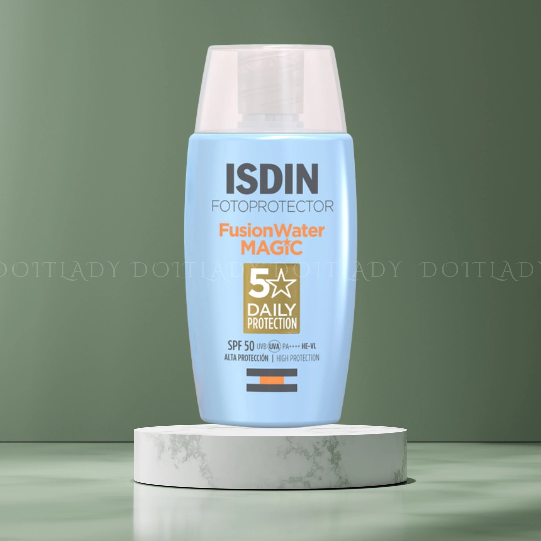 ضد آفتاب فیوژن واتر مجیک SPF50 ایزدین یکی از پیشرفته‌ترین محصولات مراقبت صورت برند ISDIN از کشور اسپانیاست که به‌طور اختصاصی برای افرادی طراحی شده که به‌دنبال محافظت روزانه، سبک و مؤثر در برابر آفتاب هستند. این محصول با SPF50 واقعی و قدرت محافظت بالا در برابر اشعه‌های UVA و UVB، بافت فوق‌العاده سبک و زودجذبی دارد که تجربه‌ای بی‌نظیر از استفاده یک ضدآفتاب روزانه را به شما هدیه می‌دهد. حجم این محصول ۵۰ میلی‌لیتر است و تا ۶ ماه پس از باز شدن قابل استفاده می‌باشد. فرمولاسیون آن فاقد چربی، غیر کمدون‌زا و بدون سوزش چشم بوده و برای انواع پوست به‌خصوص پوست‌های چرب ایده‌آل است.